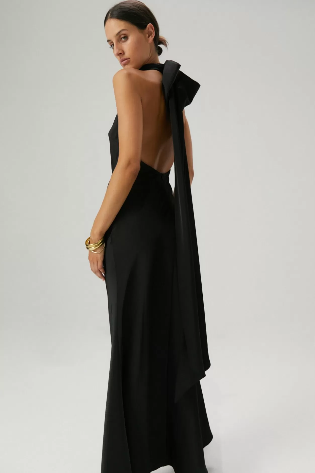 A Show-Stopping Gown For A Special Someone On Their Special Day. The Evianna Satin Maxi Dress Exudes Modern Femininity, Showcasing High Neck And Statement Back Bow Detail.